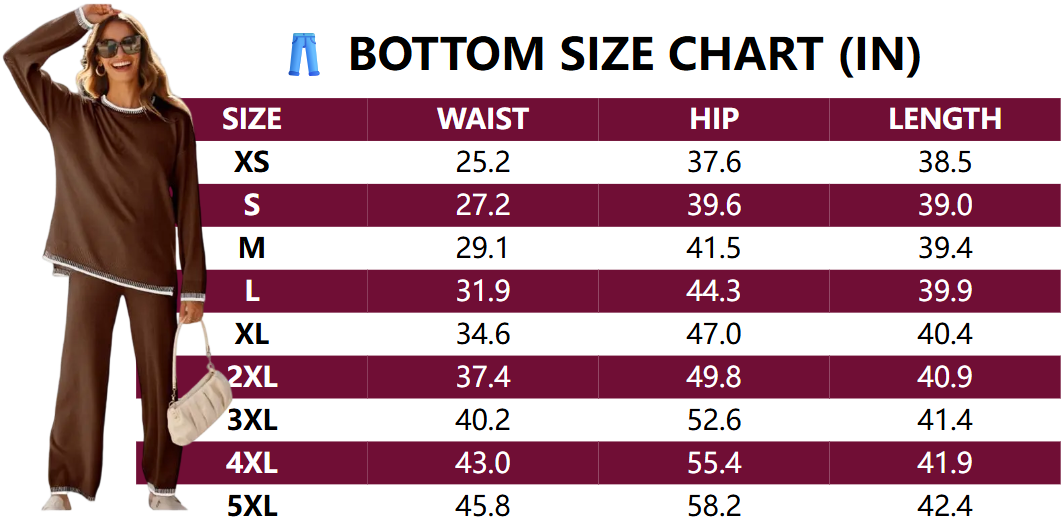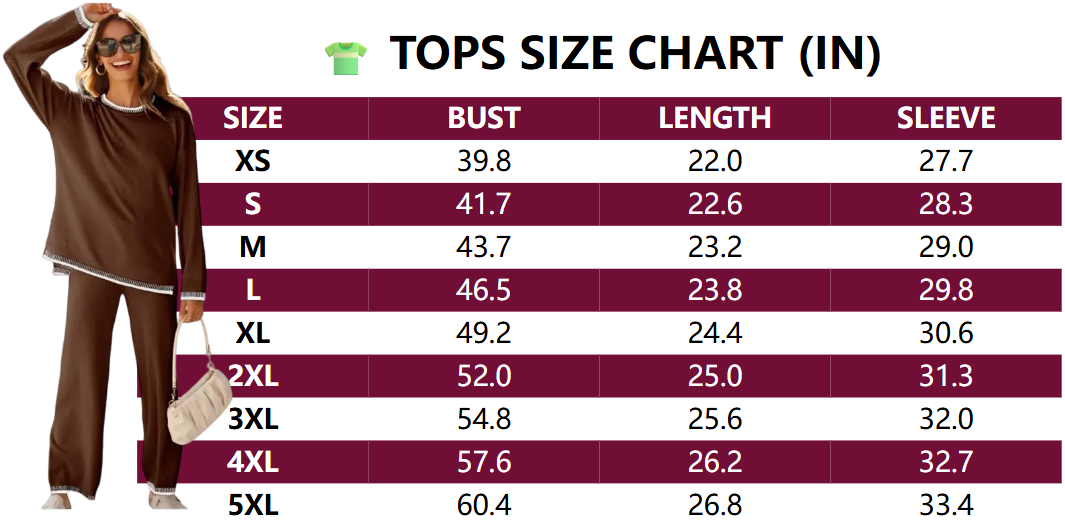 Stylish Silhouette Details: Loose long-sleeve crew neck top and high-waisted elastic-waist pants (fits all body types).