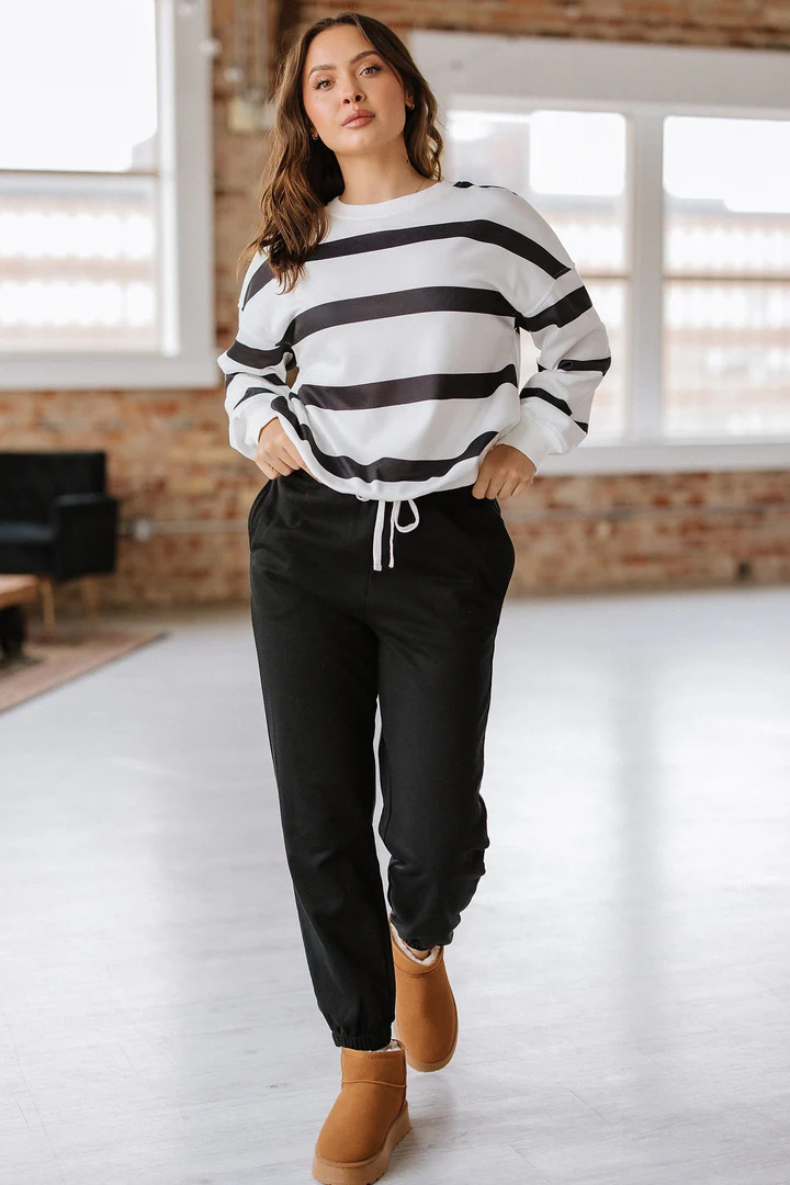 Get ready to lounge in style with the Striped Pullover and Joggers Set. The perfect match for your laid-back and quirky personality, this set features a playful striped design and comfortable fit. Perfect for those days when you just want to chill.