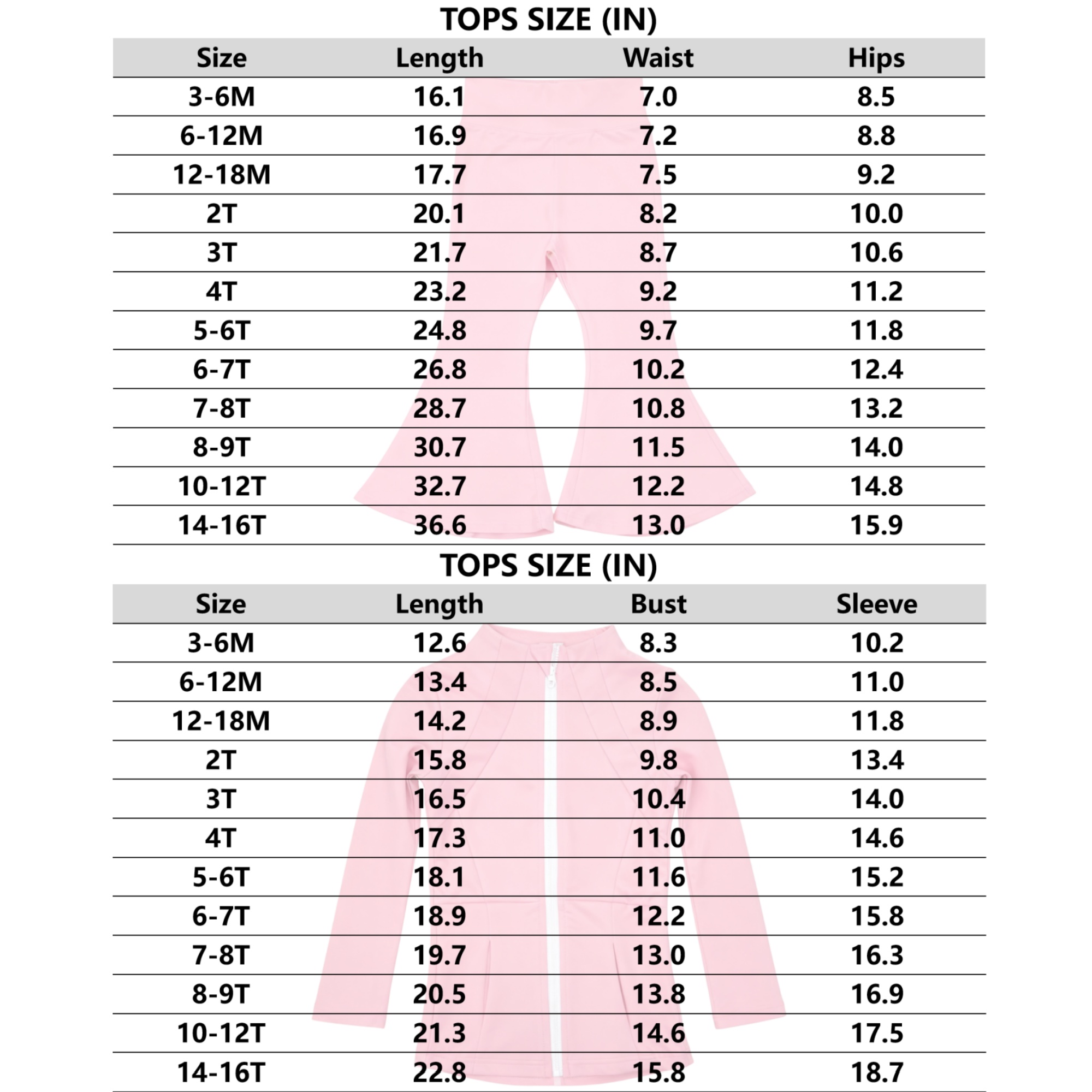 Note: "M" is the abbreviation of "Month", referring to baby's age in months."T" stands for "Toddler Size" in children's clothing, representing age groups.
