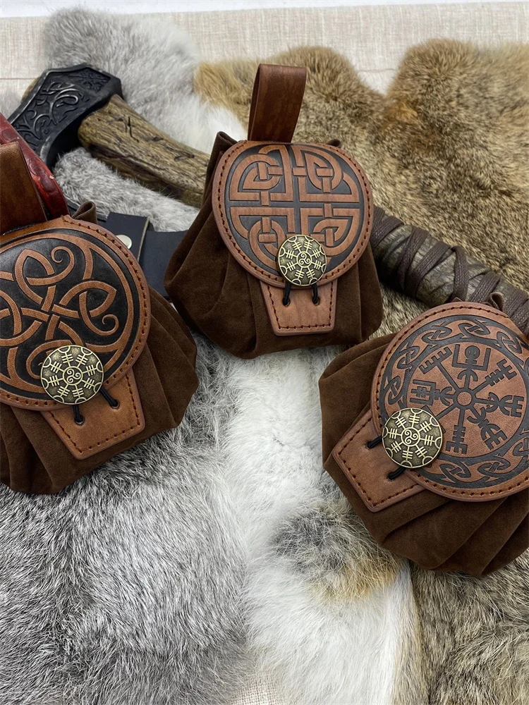 Viking Vegvisir Celtic Knot Embossed Leather Belt Pouch Bag