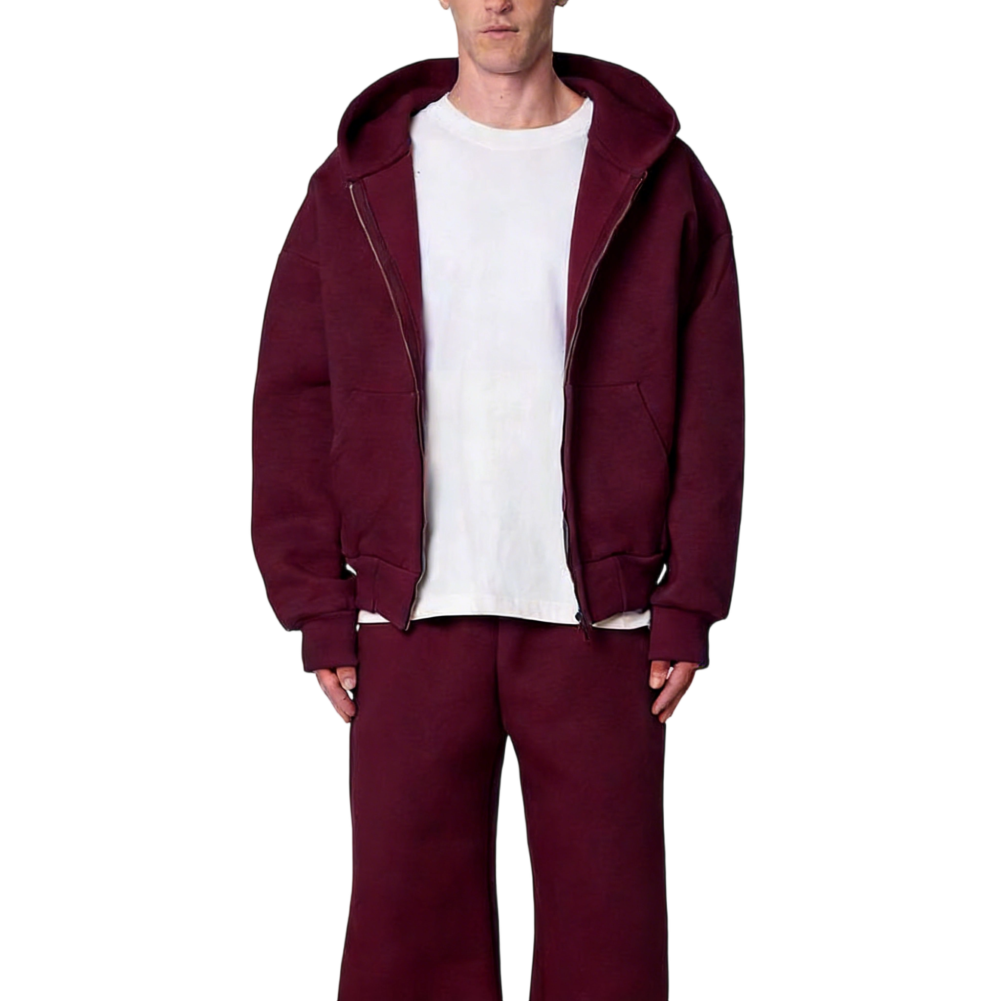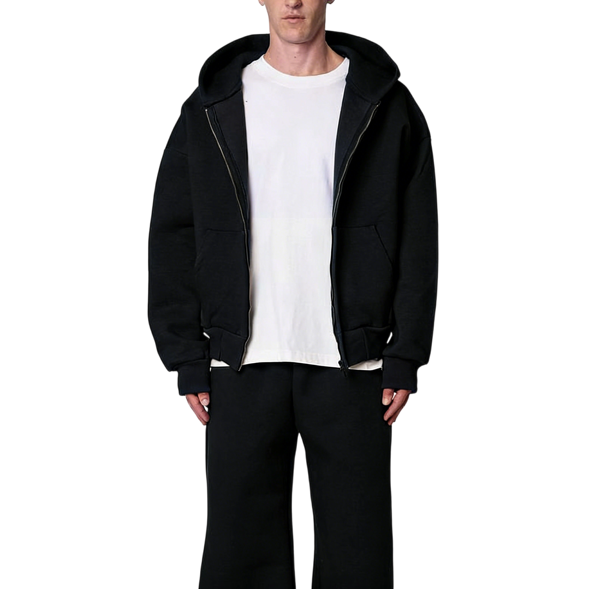 Pre-matched hoodie + pants eliminate styling effort, creating a cohesive, neat casual look. The full-zip design allows flexible wear (fully zipped for warmth, open for ventilation).