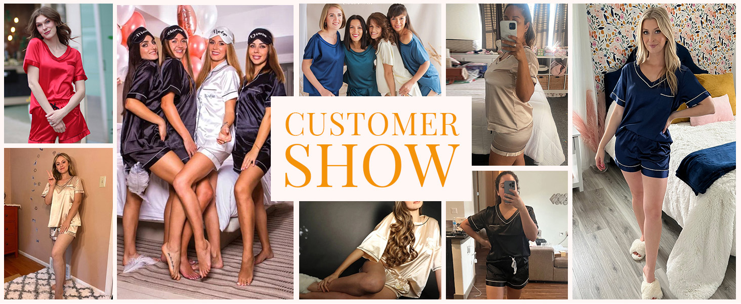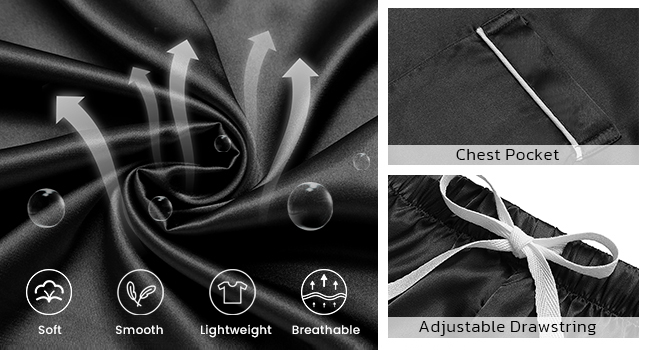 Soft Silk Pajama: Satin pajamas set ,soft, lightweight and breathable. Not easy to wrinkle and fade.