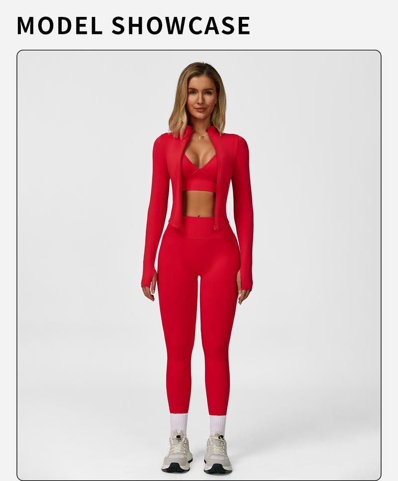 Women Quick-Dry Running Yoga 3-Piece Jacket Leggings Set