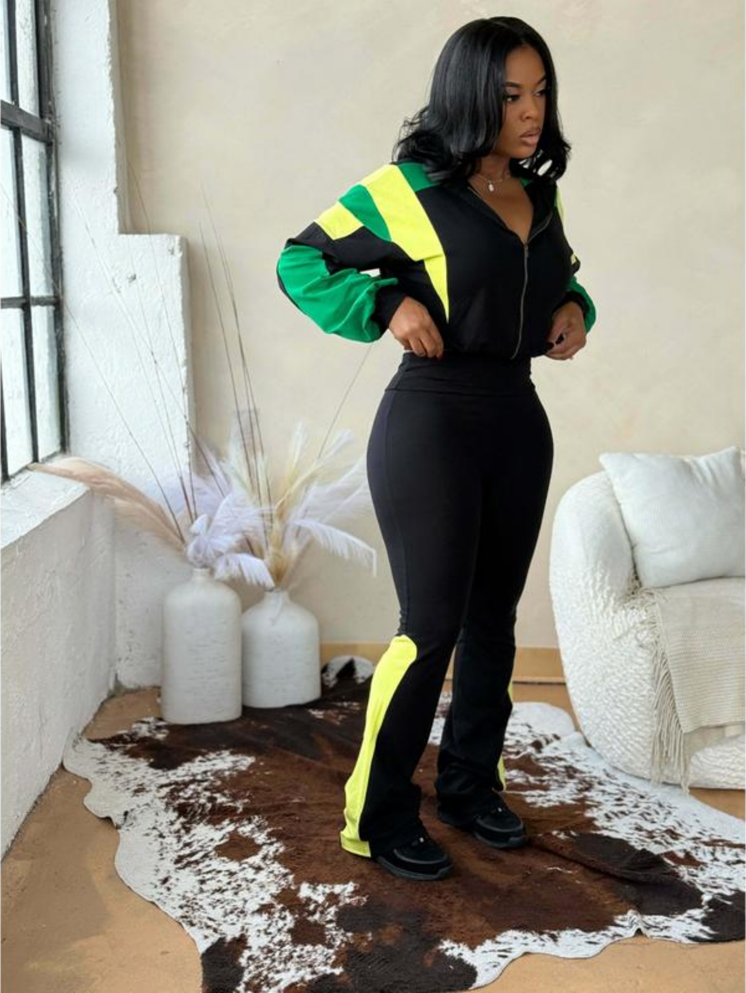 This chic two - piece ensemble is designed to blend comfort and fashion seamlessly.