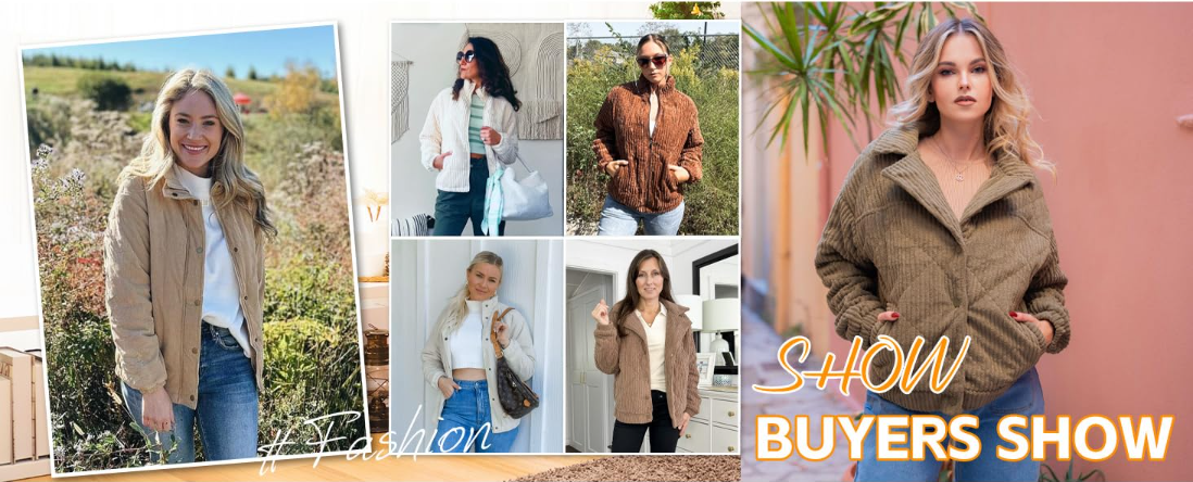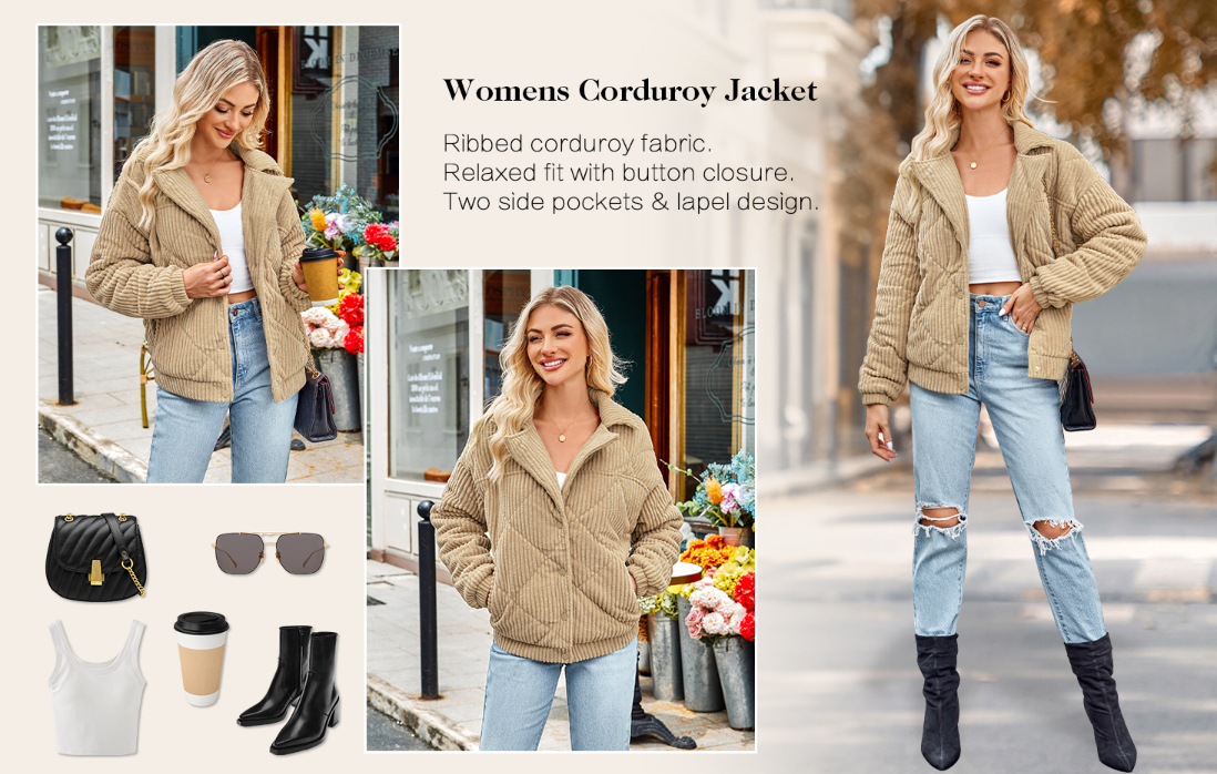 【Pairing】Women's button-front corduroy jacket: multiple colors (black/khaki/brown/army green/wine red + more). Pairs with camisoles/sweaters over jeans/skirts; layers over slip dresses—fall layering essential.
