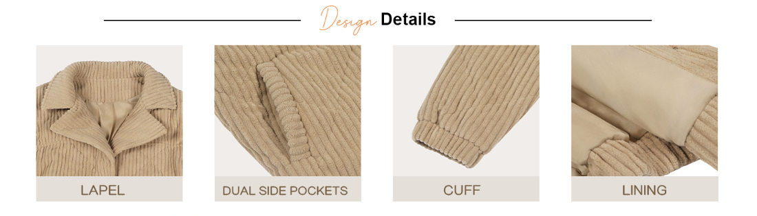 【Occasions】Women's zipper corduroy jacket: fits casual & formal occasions (sports, outdoor, party, office, date, school, vacation, shopping, home). Wearable in autumn, winter & spring.