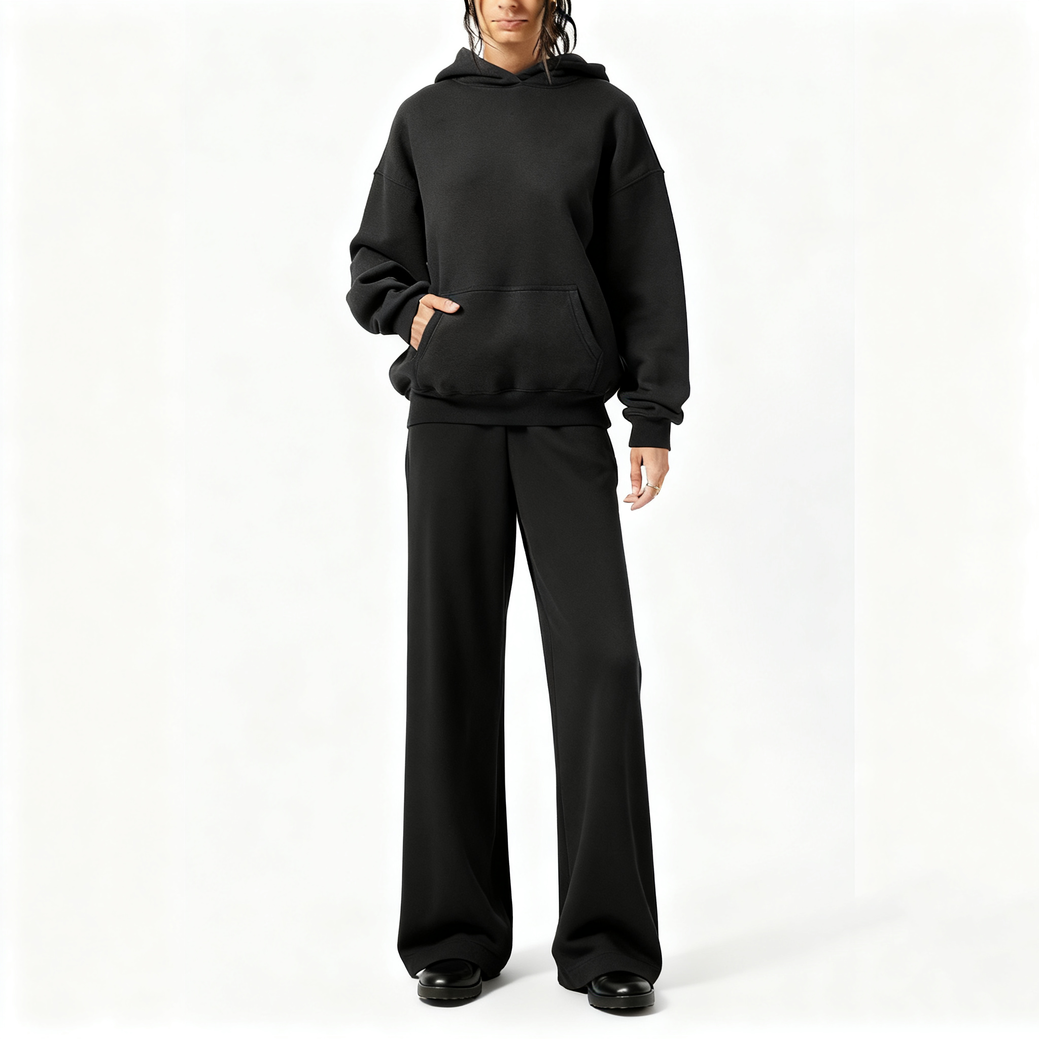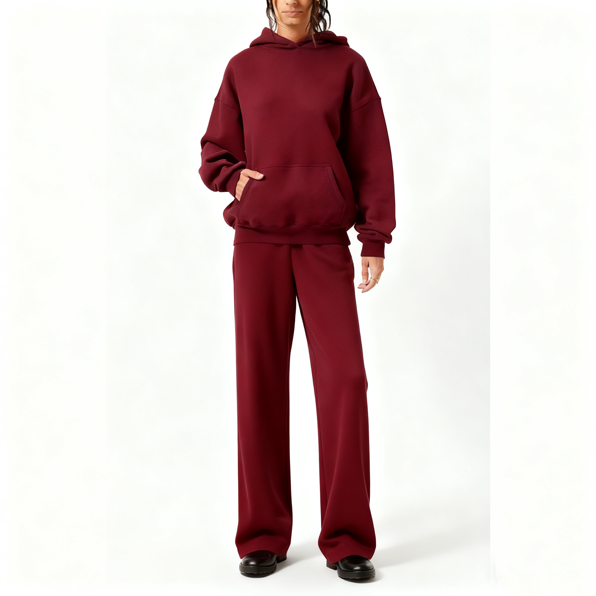 Fabric & Design: Soft washed fabric, oversized hoodie with front pocket, matching relaxed sweatpants – cozy loungewear set.
