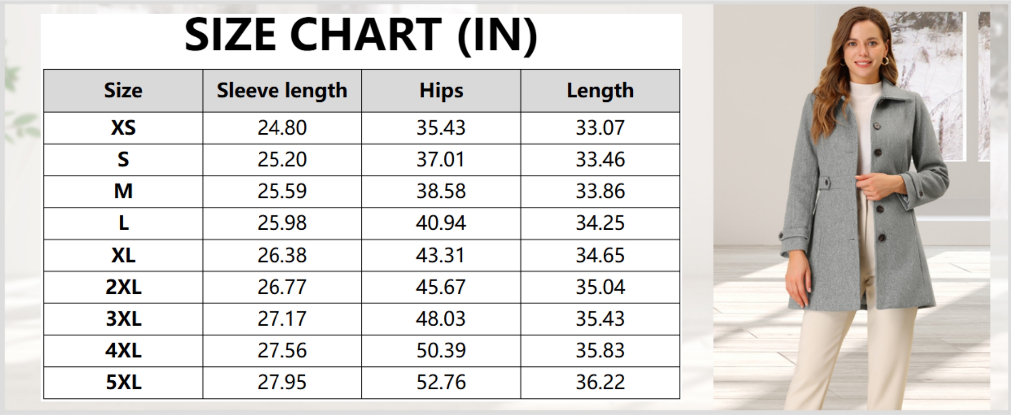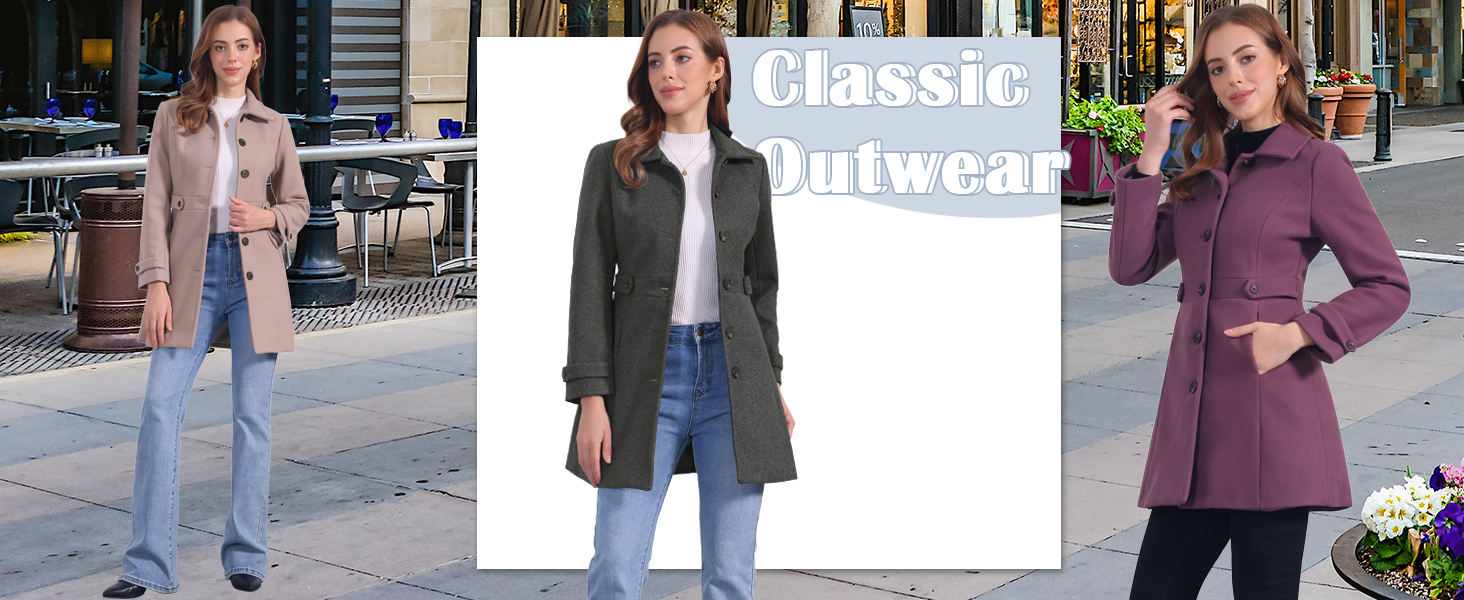 - DesignNotched shawl collar + single-breasted long cut — sleek, elegant winter fit.