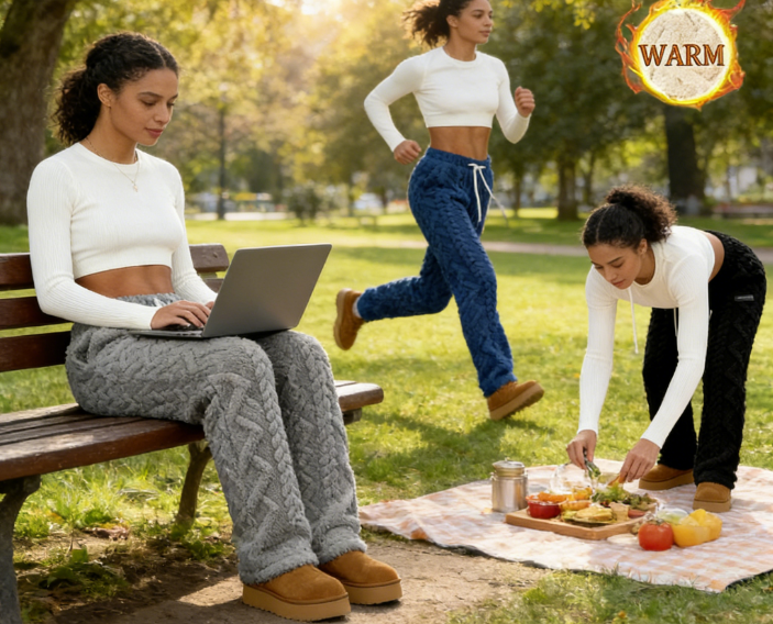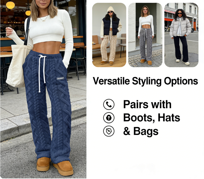Occasions: Ideal for multiple scenarios: perfect for lazy home lounging, casual weekend errands (paired with a hoodie), cozy coffee meetups (styled with a cropped top), or even mild winter outdoor activities (layered under a long coat). It balances comfort and trendiness for both indoor and light outdoor use.