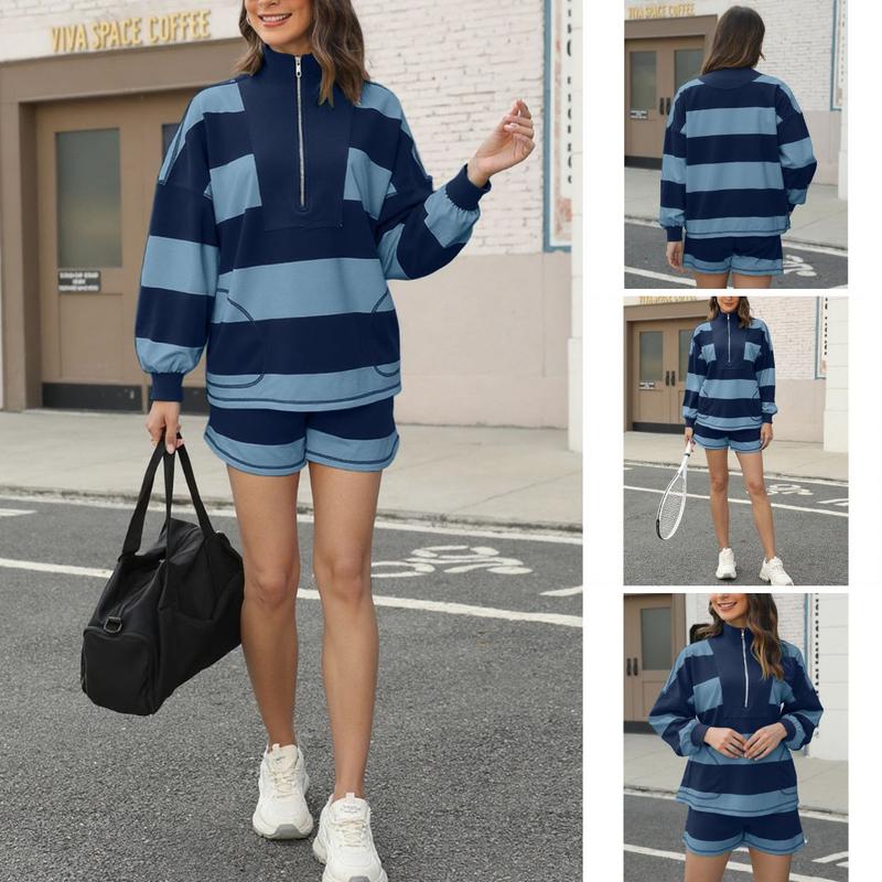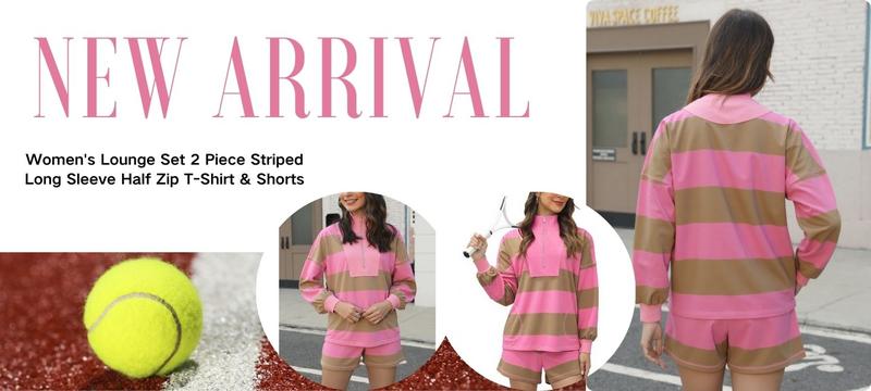 Easy Care: striped 2 piece short sets for women are recommended to machine wash or hand wash in cold water, do not bleach.