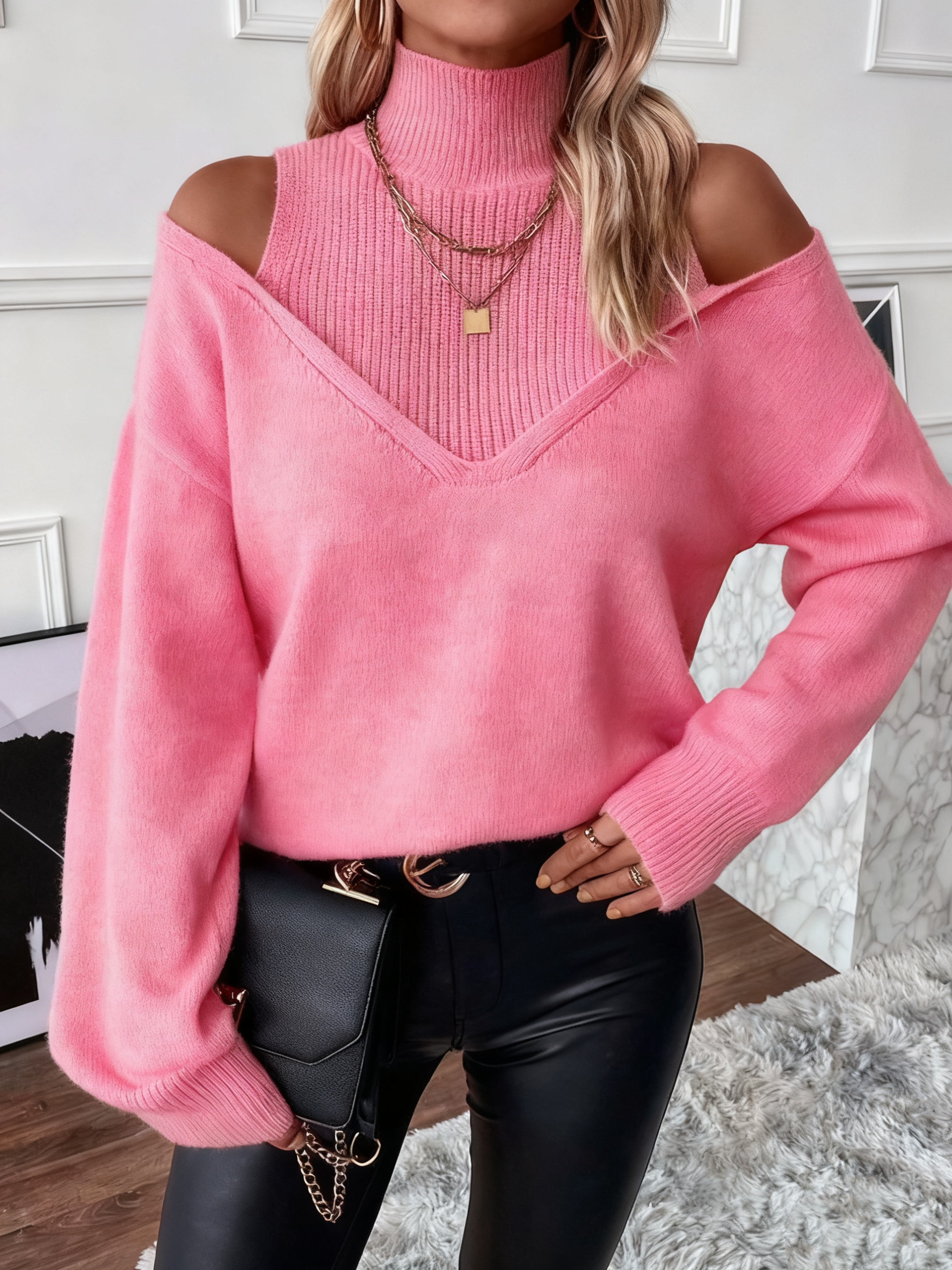 【High Neck】: Featuring a high neckline, this piece offers added warmth and a unique silhouette that distinguishes it from other sweaters.