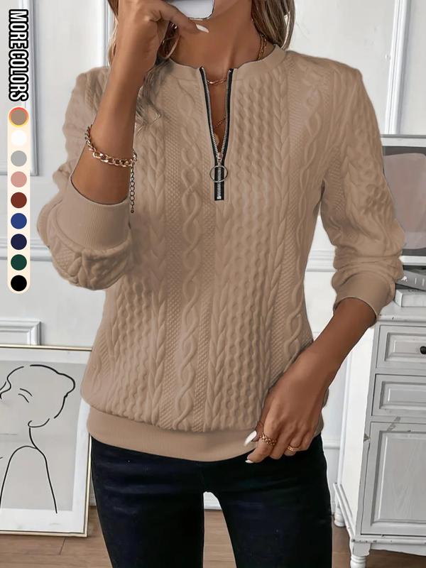 【Textured Fabric】: Crafted from jacquard knits, enhancing visual interest and providing a unique tactile experience, setting it apart from other sweatshirts.【Functional Half Zip】: The half zip closure allows for adjustable ventilation, making it practical for fluctuating temperatures during fall and winter.【Fitted Cut】: Designed with a fitted profile that flatters the figure while maintaining a professional appearance suitable for various occasions.【Long Sleeve Coverage】: Provides full arm coverage, perfect for chilly days and ensuring warmth, making it an essential addition to your seasonal attire.【Machine Washable】: Easily cared for with machine washing, ensuring convenience for busy lifestyles while retaining quality and structure after multiple washes.