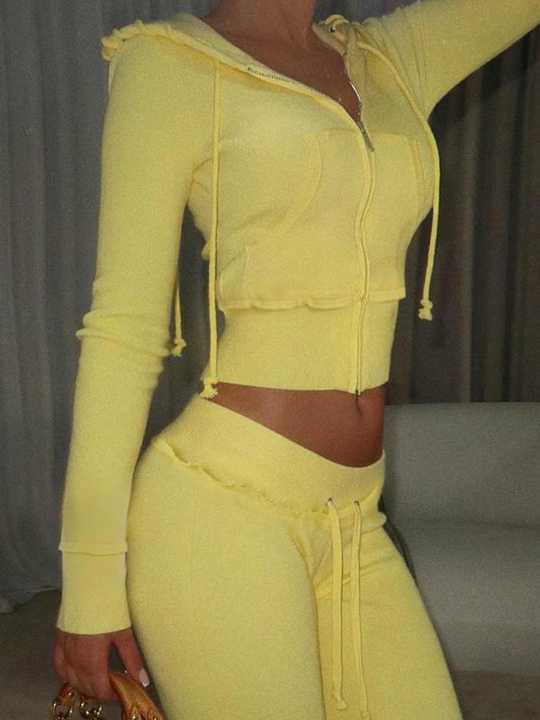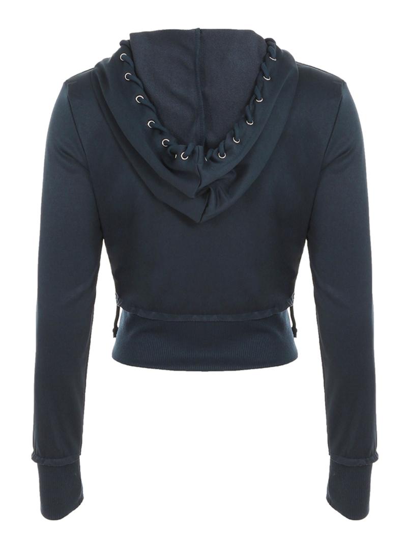Design: Features a drawstring zip-up crop hooded design, stylish and trendy, with long sleeves and pockets for practicality.