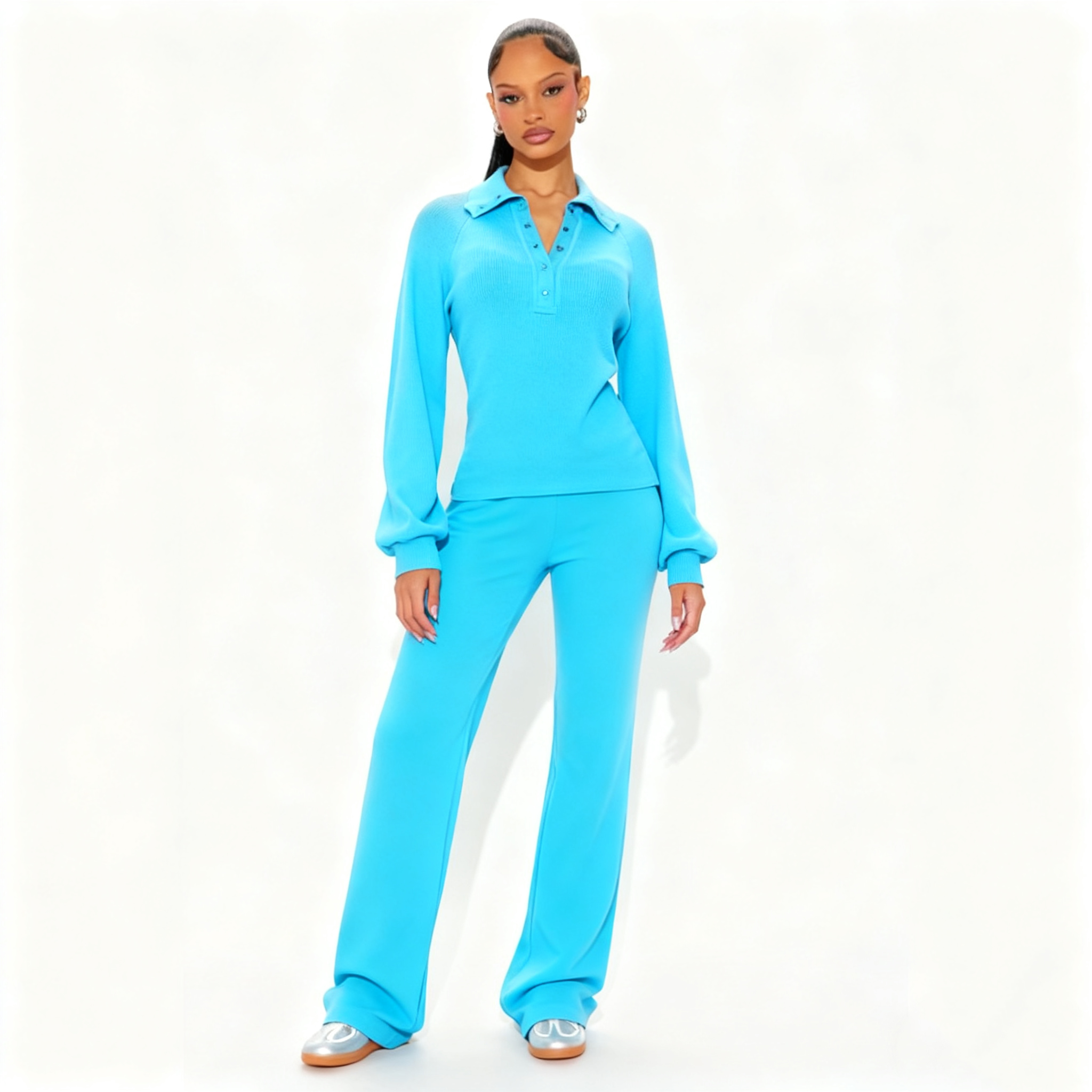 Trendy Cropped Hoodie & Pant Design: Features a cropped hoodie top (accentuating waistline) and matching pants, creating a sleek, cohesive casual look that balances fashion and comfort.