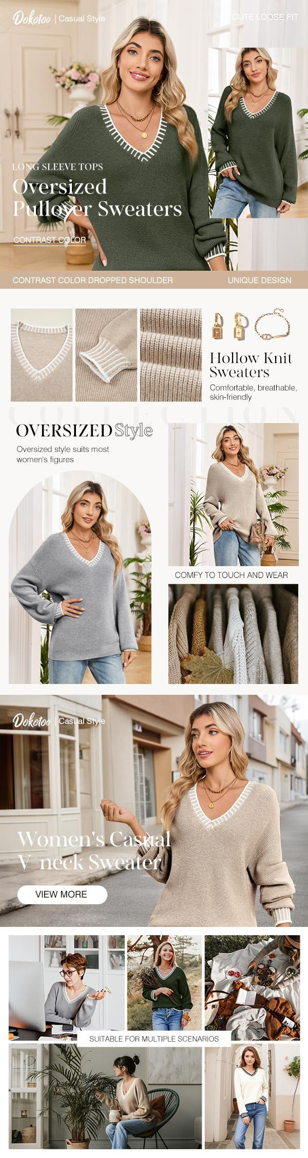 ·Occasion: The casual loose fit sweaters jumper tops is perfect choice for your daily wear, outdoor activities, shopping, dates, vacation and any other occasions in Spring, Fall and Winter