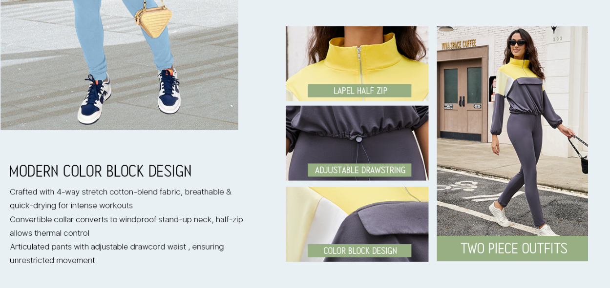 - Fashion Design:The top features a half-zip structure for easy on-off and adjustable necklines, perfect for versatile styling.