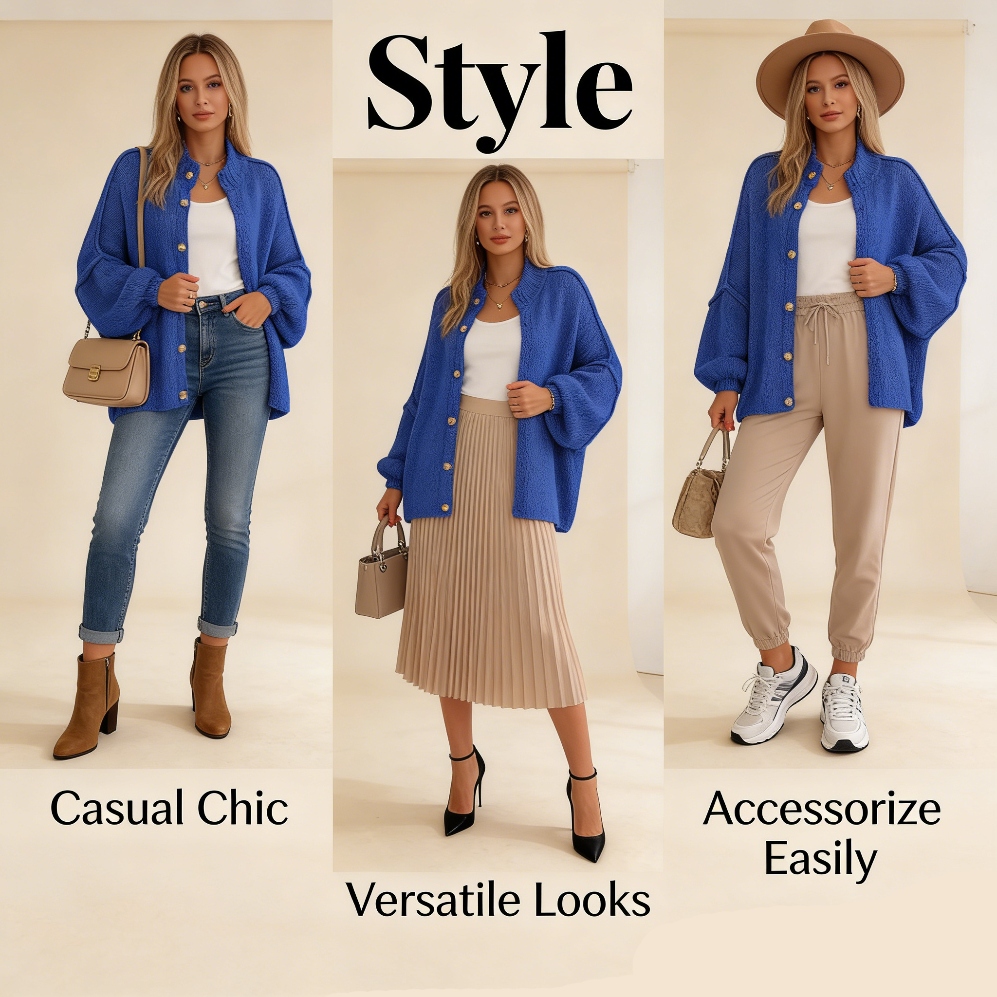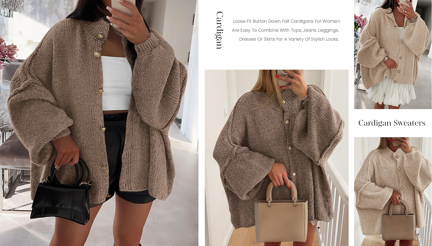 Loose fit: Relaxed silhouette; drop-shoulder sweater; lantern sleeve cardigan; simple solid color; hip-length; cardigan; long-sleeved cardigan; chunky knit cardigan; plus size; lightweight and versatile.Target audience: Suitable for fashionable women aged 20-35 who value comfort and style. Especially suitable for those who prefer a "relaxed chic" style—whether busy professionals, students, or lifestyle bloggers.Washing and care: Easy to wash, machine washable or hand washable, cold water, hang to dry.